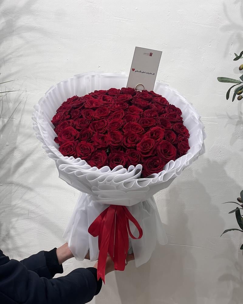 - باقة ورد 60 ورده جوري احمر بتغليف مميز وجميل